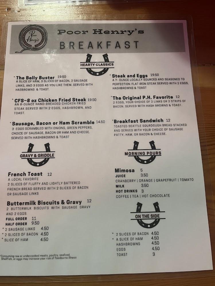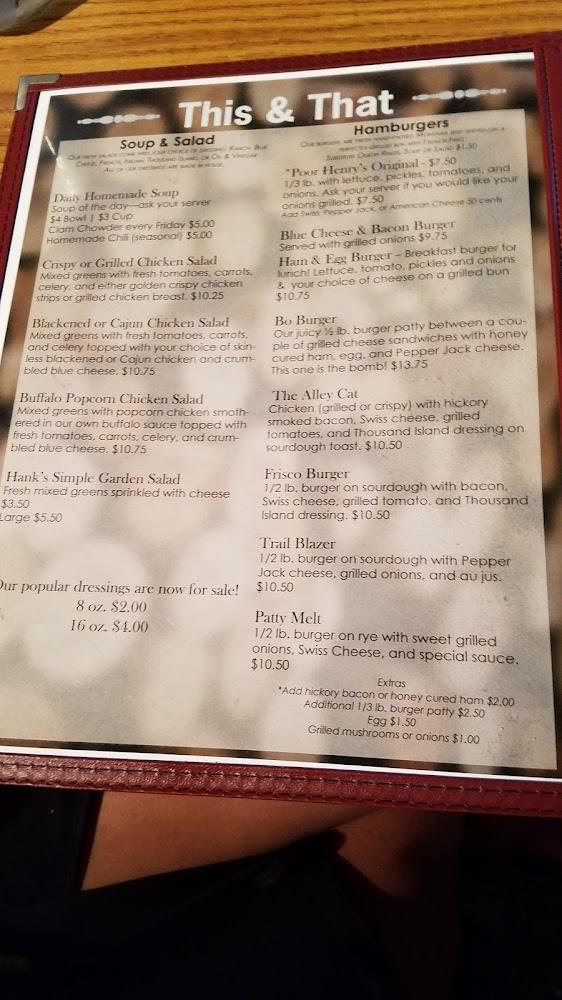 Poor Henry's Bar offers a menu filled with comforting classics. Start with their delicious appetizers like mozzarella sticks and nachos. It's perfect for sharing with friends, while a range of sandwiches and wraps caters to various tastes. The selection is impressive, with 48 total menu items.